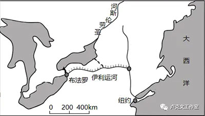 那时还没有火车,走陆路从布法罗运一吨货物到纽约,需要120美元,成本极高,为了将五大湖与纽约连在一起,美国决定开建伊利运河。