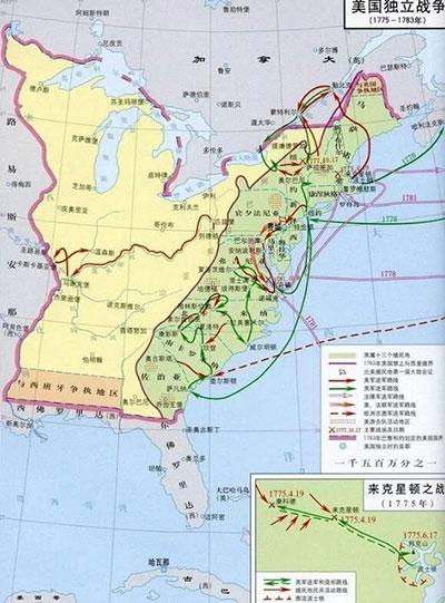 1783年,在独立战争中战败的英国,除了北美东部十三州,另承认阿巴拉契亚山以西、五大湖以南、密西西比河以北的土地都归美国,美国的领土终于翻过了阿巴拉契亚山,国土面积扩大了一倍。
